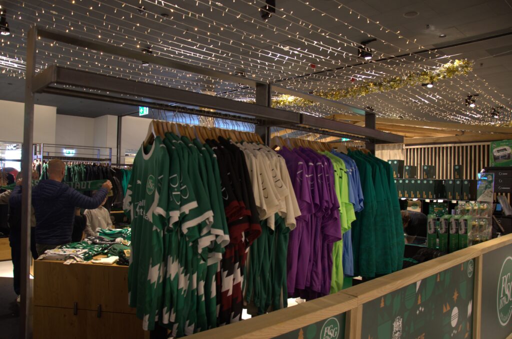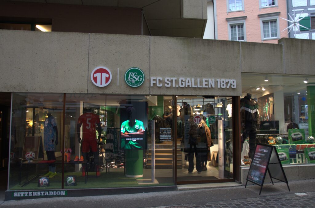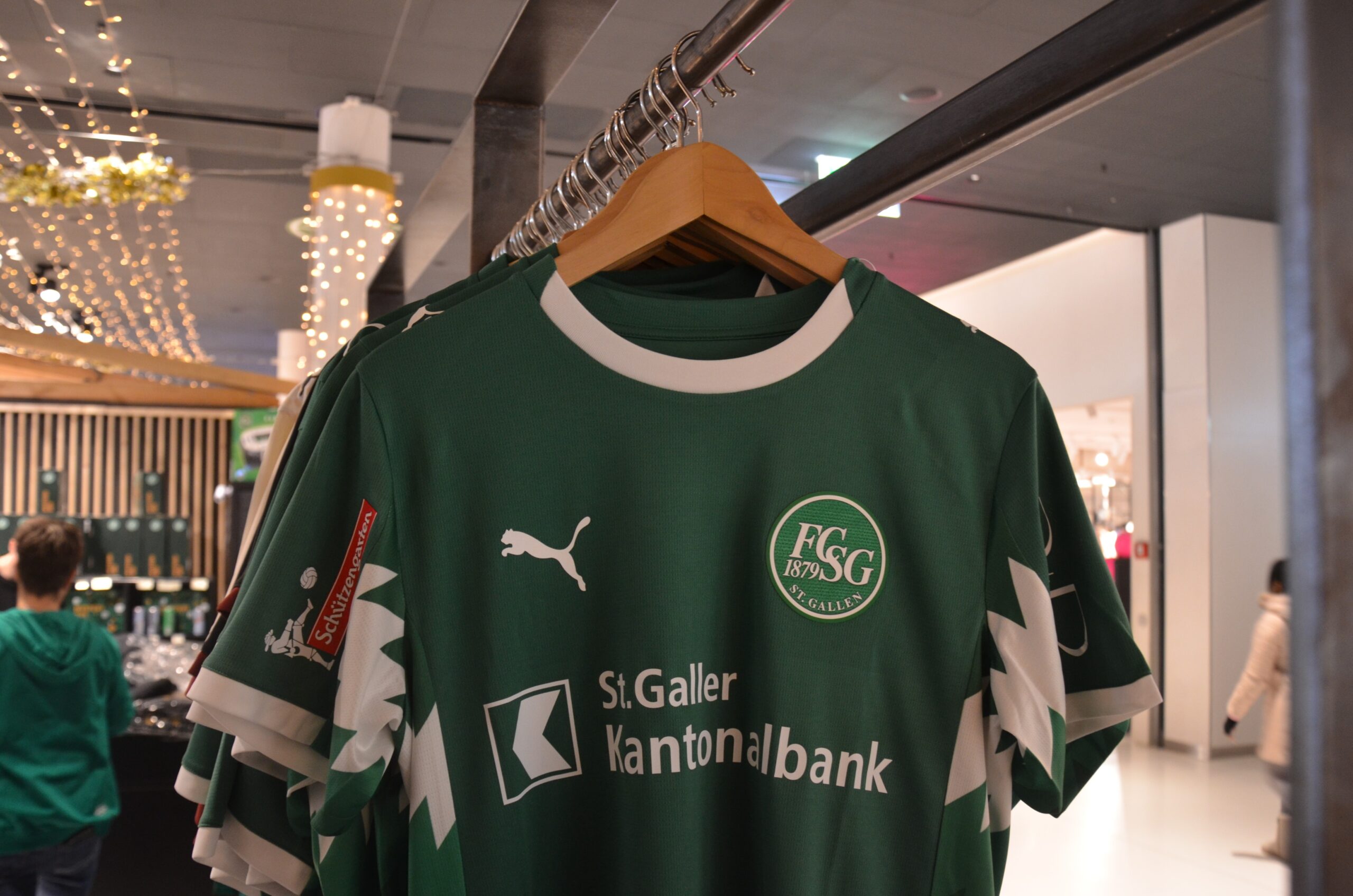 Titelbild: Weihnachtlich beleuchtet: Ein FCSG-Trikot im Fanshop des Kybunparks. Für viele Fans ein kostspieliges Geschenk. (Quelle: Lenard Baum)