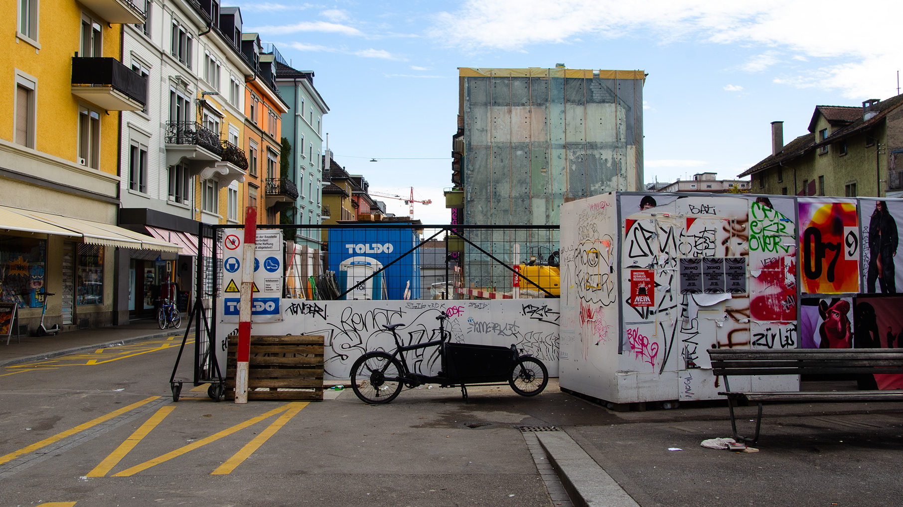 Titelbild: Das ehemalige Areal des Clubs Zukunft und der Piranha Bar ist heute eine Baustelle. An ihrer Stelle entstehen ein Coop und Eigentumswohnungen. (Foto: Michelle Laseroms)